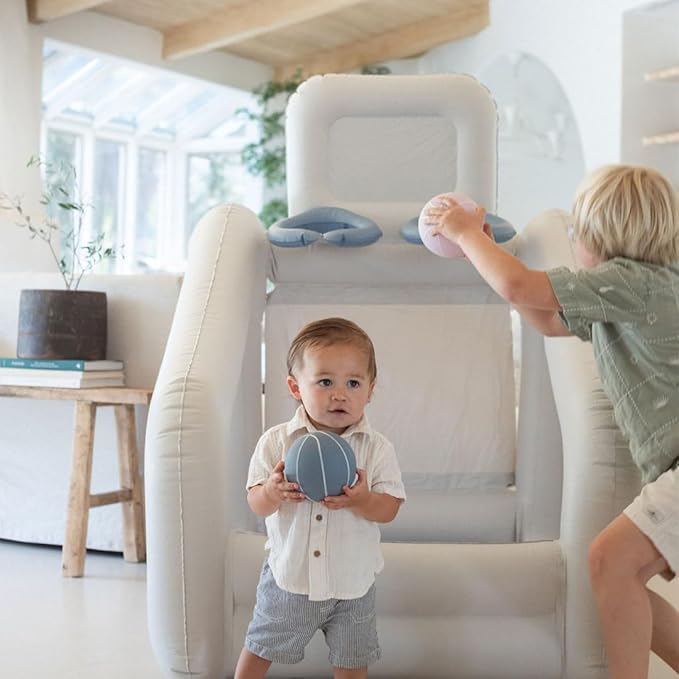- Built for Littles, Made to Last: Crafted from durable, kid-safe materials for everyday play. This set includes: 1 Mini Dual Shot inflatable basketball hoop, 4 rubber balls, 1 ball pump, 1 repair kit, 1 user manual, and 1 storage bag.