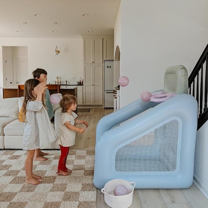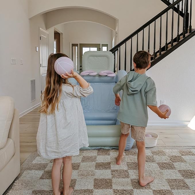 - Built for Littles, Made to Last: Crafted from durable, kid-safe materials for everyday play. This set includes: 1 Mini Dual Shot inflatable basketball hoop, 4 rubber balls, 1 ball pump, 1 repair kit, 1 user manual, and 1 storage bag.