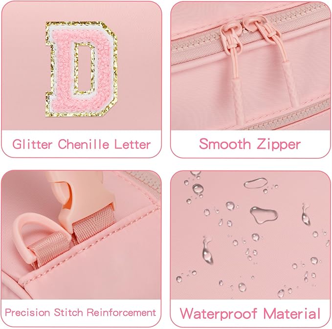 Initial Insulated Lunch Bag for Girls Kids, Back to School Gift, Reusable Leak-proof Lunch Box with Adjustable Strap for School Daycare Travel Picnic (Pink,D)