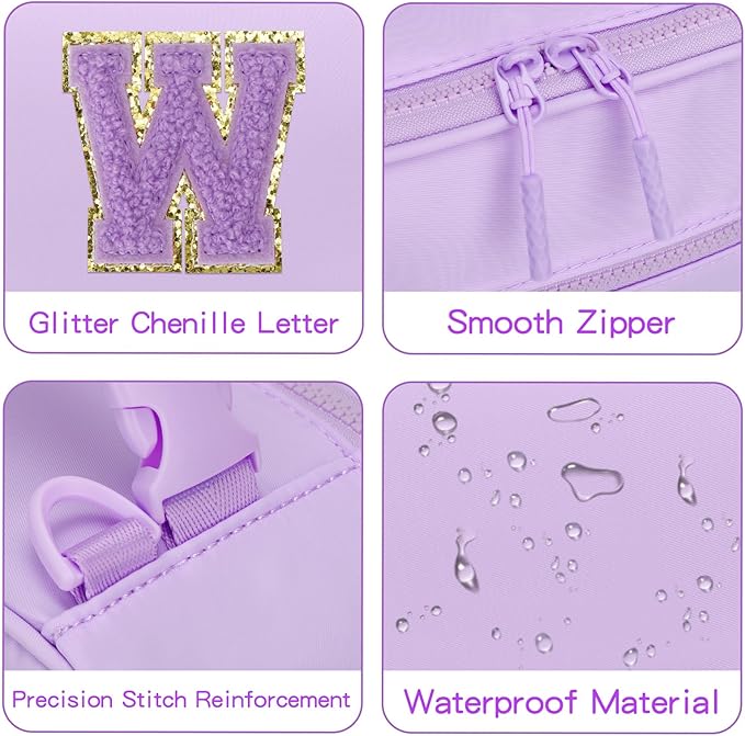 Initial Insulated Lunch Bag for Girls Kids, Back to School Gift, Reusable Leak-proof Lunch Box with Adjustable Strap for School Daycare Travel Picnic (Purple,W)