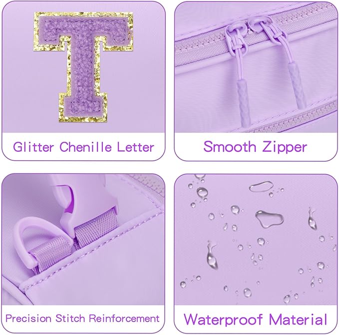 Initial Insulated Lunch Bag for Girls Kids, Back to School Gift, Reusable Leak-proof Lunch Box with Adjustable Strap for School Daycare Travel Picnic (Purple,T)