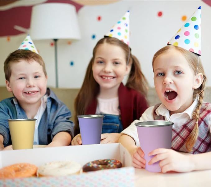 - Versatile use - More than just a drinking cup - Whether water, juice, cola or smoothies - the stainless steel cups hold all drinks safely. Bonus benefit: Perfect as a toothbrush cup in the bathroom or storage container for snacks! The cylindrical shape and smooth surface allow for flexible usage scenarios