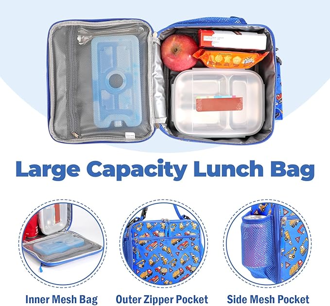 - 【Multi-Pocket Lunchbox】This kids lunch bag accommodates lunch boxes, snacks, and drinks with a side mesh pocket. It features a front pocket for napkins and notes, and an inner mesh pouch for ice packs and utensils. Ideal for packing all your food and snacks for the day.