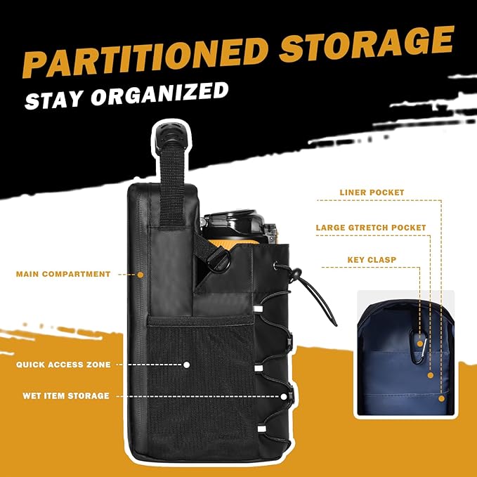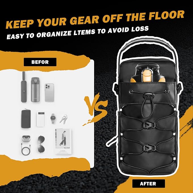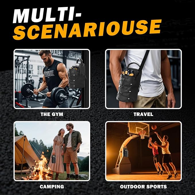 - Multi-Layer Storage Compartments:3 compartments + 2 side pockets + Quick access to water cups. Holds phones/keys/40oz bottles without clutter. No more digging mid-workout!