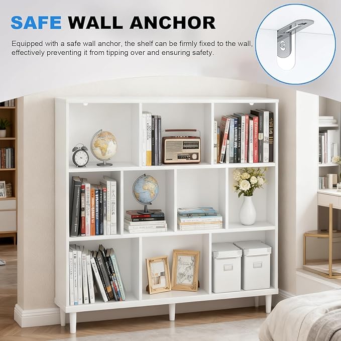 - 3. Versatile Bookshelf for All Rooms: This multi-functional bookshelf is suitable for home offices, living rooms, or foyers. It features multiple grid storage compartments, which can hold handicrafts, decorations, or organize daily essentials. This stylish white bookshelf can also double as a TV stand, linen cabinet, or modern-style shelving unit, integrating practicality with minimalist aesthetics.
