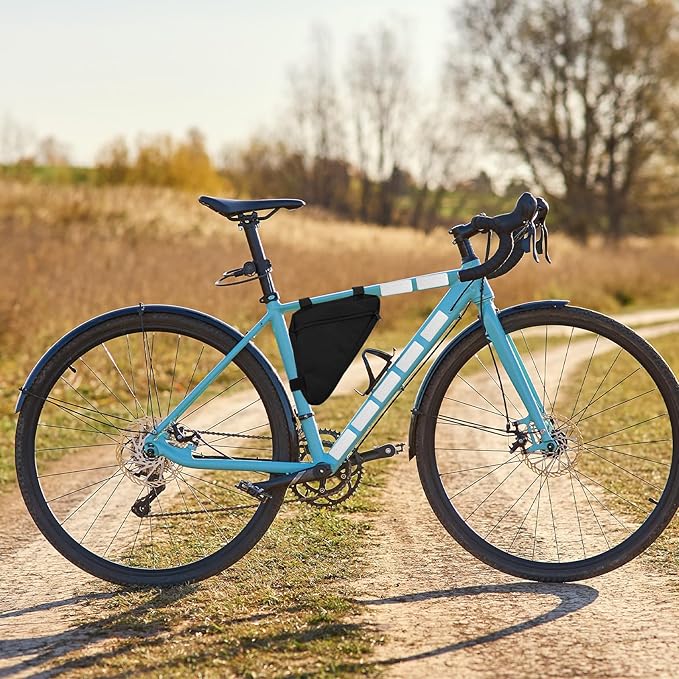 - Aerodynamic Triangular Design: The unique triangular shape of this bike frame bag fits the geometry of your bicycle frame, minimizing wind resistance and maintaining a clean look. This space-saving bike storage bag doesn’t interfere with pedaling or movement, making it an ideal choice among bike bags for bicycles where performance and aesthetics matter.