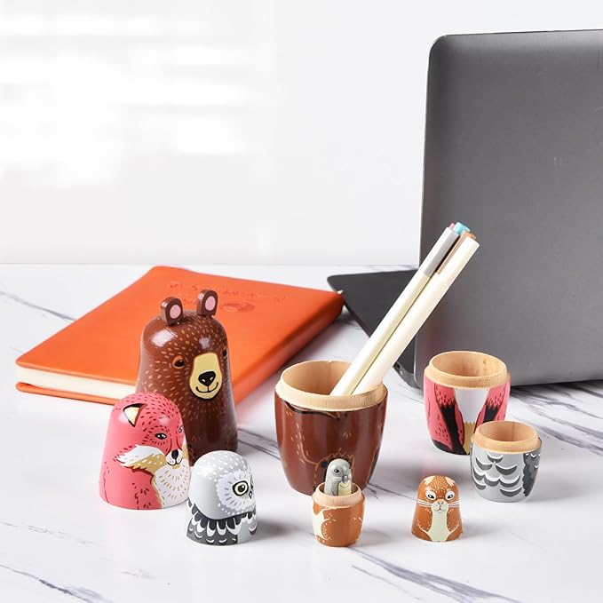 - 【Cute cartoon appearance】Russian doll contains 5 animals of different sizes and shapes, including dog, polar bear, elephant, fairy, brown bear, etc.One is placed inside another, making the whole look like one.