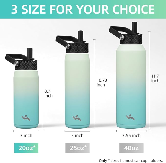 20oz Insulated Stainless Steel Water Bottle with Straw and 3 Lids, BPA-Free Sports Water Bottle,travel water bottle,Mint