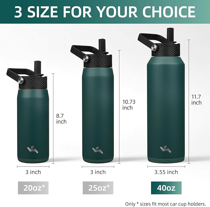 40oz Insulated Stainless Steel Water Bottle with Straw and 3 Lids, BPA-Free Sports Water Bottle,travel water bottle,Green