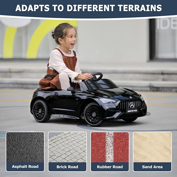 - 【Officially Licensed Mercedes-Benz AMG GLE53】: With the same styling as the real car, like a racing steering wheel, slim body with sleek lines, vehicle horn, and LED lights, this vehicle brings your little one a realistic driving experience