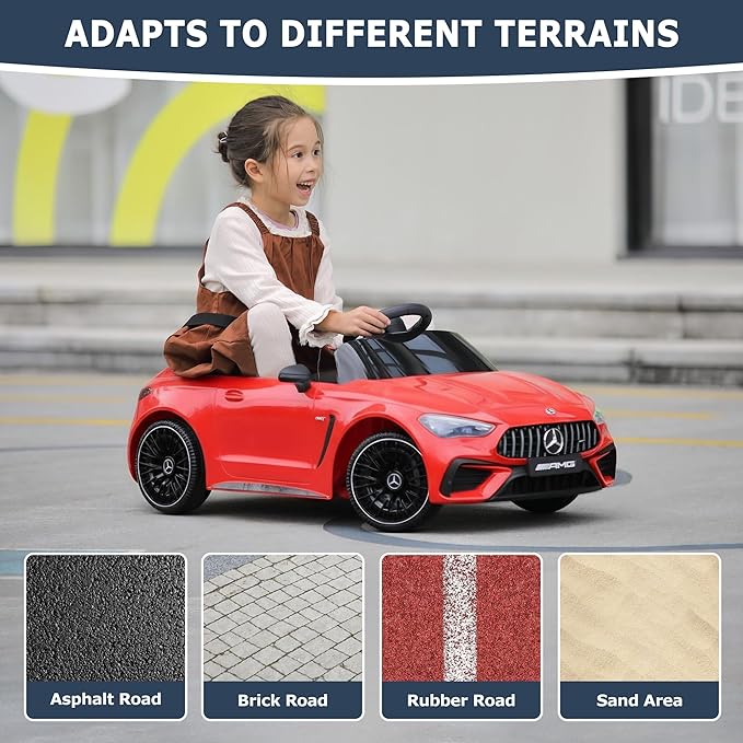 - 【Officially Licensed Mercedes-Benz AMG GLE53】: With the same styling as the real car, like a racing steering wheel, slim body with sleek lines, vehicle horn, and LED lights, this vehicle brings your little one a realistic driving experience