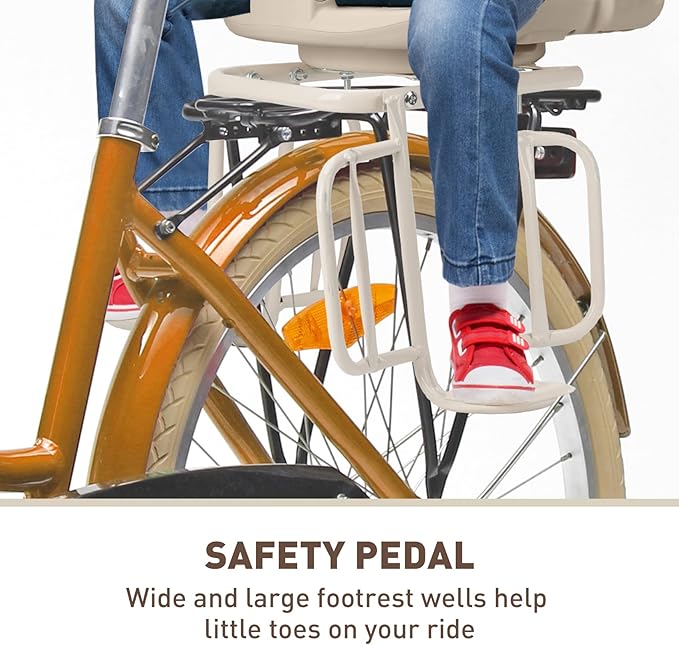 - 【Breathable and comfortable】The bike seat load capacity of 55 pounds, thickened cushion + breathable mesh backrest, sitting for a long time is not stuffy, suitable for 2 - 5 years old baby (max load capacity of 55 pounds).