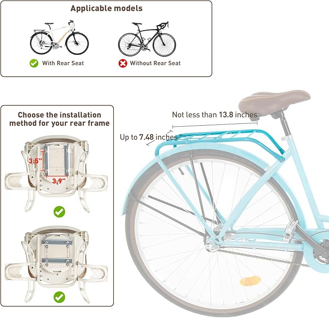 - 【Universal fit + quick-fit design】Our toddler bike seat fits most of the rear seat bicycles, easy to install, you can refer to our instructions.
