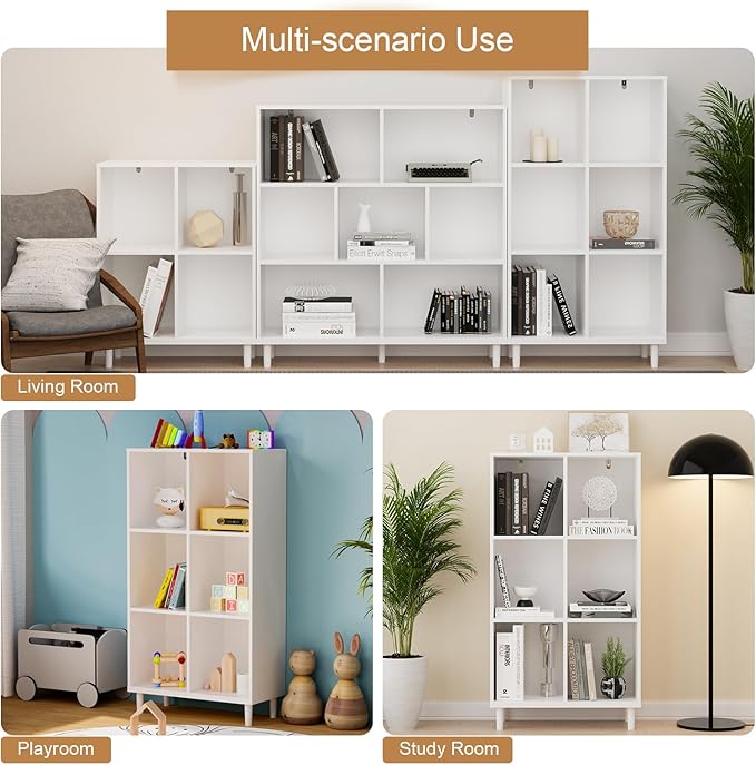 - 3. Versatile Bookshelf for All Rooms: This multi-functional bookshelf is suitable for home offices, living rooms, or foyers. It features multiple grid storage compartments, which can hold handicrafts, decorations, or organize daily essentials. This stylish white bookshelf can also double as a TV stand, linen cabinet, or modern-style shelving unit, integrating practicality with minimalist aesthetics.