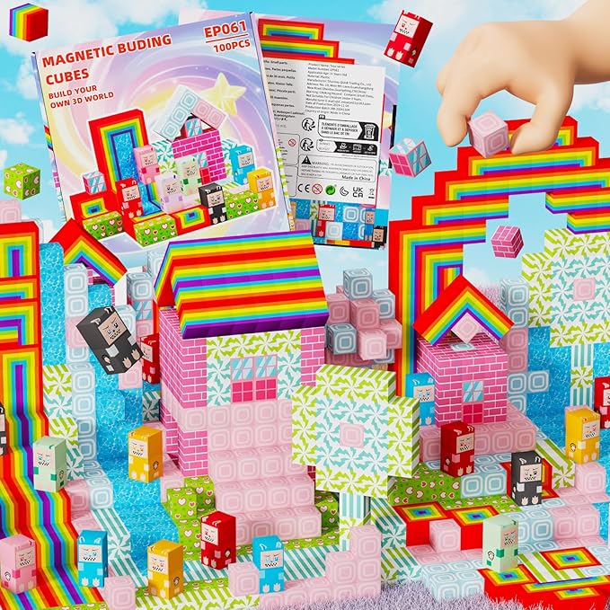 100PCS Magnetic Blocks, Magnet Educational Learning Toys for Kids, Boys and Girls, Magnetic Building Blocks Cubes, Stacking Magnets for Kids, Birthday Gifts for Boys and Girls Age 3+