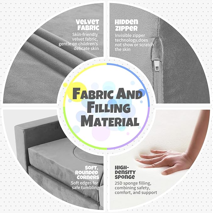 - Plush, Child-Safe Comfort - Crafted with high-density, supportive foam and ultra-soft velvet fabric, the cushion provides a gentle, durable surface for playtime or naps. Non-toxic materials and rounded edges ensure safety for ages 1-3, meeting rigorous child-product certifications