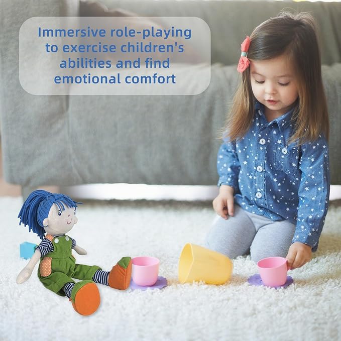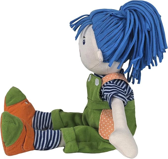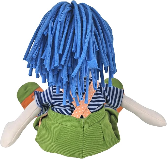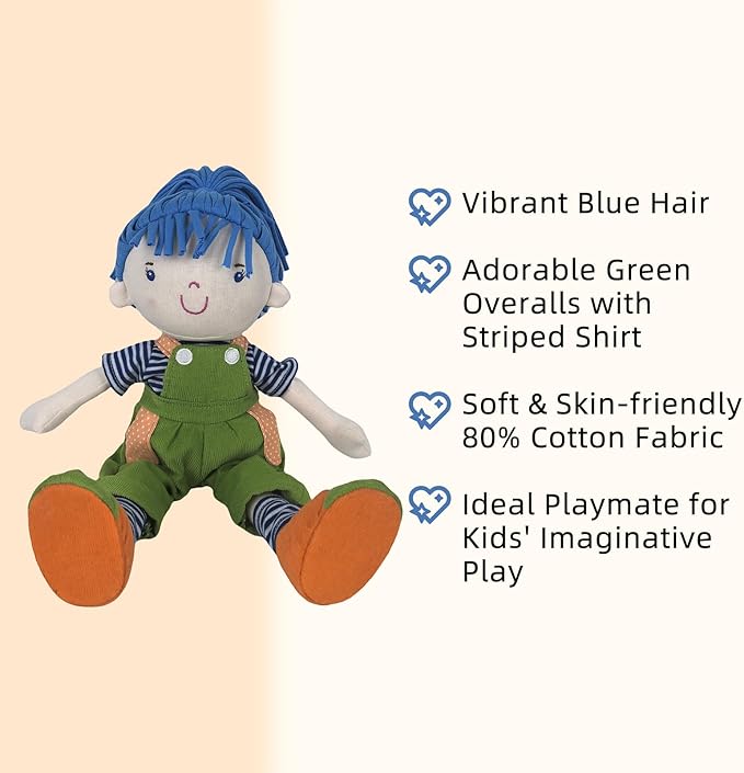 - Adorable Design:This rag doll features a charming blue-haired boy doll in a striped T-shirt and green overalls. It is ideal as a huggable playmate for kids, sparking imaginative play and cozy snuggles during playtime or bedtime