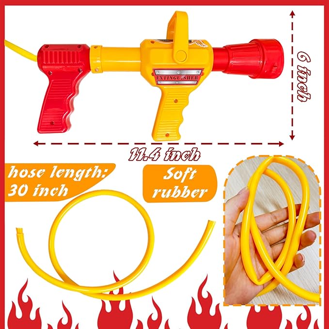 - Applicable Scenarios:Firefighter accessories set is ideal for birthday gifts,game props,school rewards,summer outdoor activities.The realistic design allows children to role-play as firefighters and participate in costume parties. Note:There's a surprise on the water gun waiting for you and your child to discover,which can test whether your child know fire knowledge