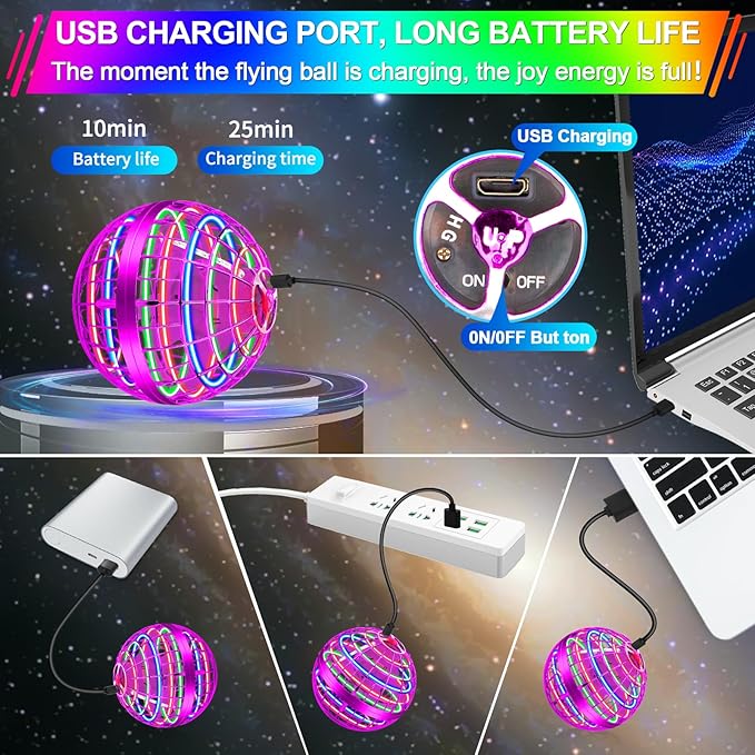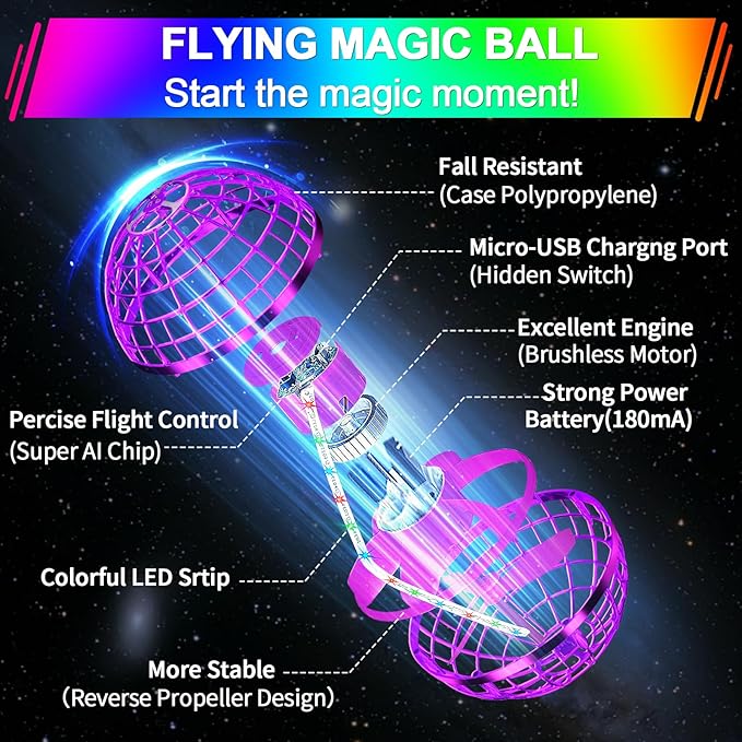 - Super Cool Flying Toys Gift: One package includes a flying floating ball, USB charging cable and User manual, providing everything you need for an amazing flying experience. This children's flying toys is the perfect gift for birthdays, Halloween, Thanksgiving and Christmas. It's also a fantastic gift choice for Easter, Children's Day, and Valentine's Day. It's a wonderful enriching gift that works perfectly for kids, teenagers, and adults—bringing joy to every age group