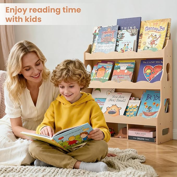 - 【Suitable for various occasions】Perfect for kids' rooms, nurseries, or playrooms, this kids bookcase creates a cozy reading nook. Great for parent-child reading time, it strengthens family bonds while keeping spaces clutter-free with efficient toy storage organizer functionality.