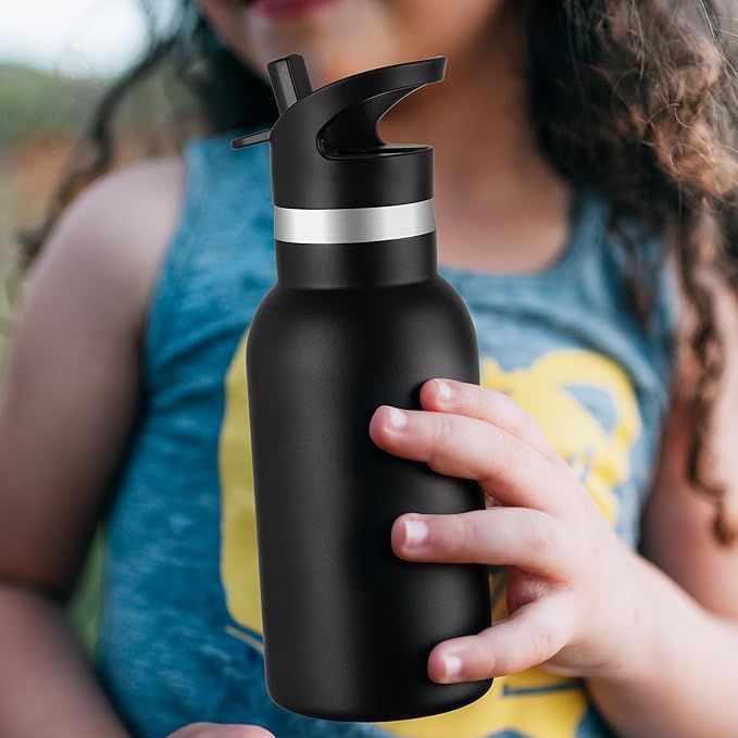 12oz Kids Water Bottle – Insulated Stainless Steel Bottle with Straw Lid, BPA-Free, Leak-Proof, for Toddlers & School Use