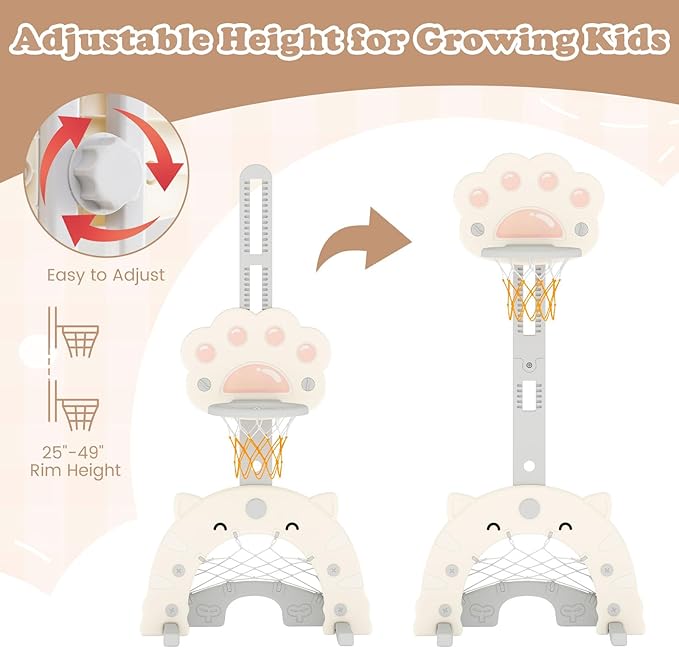 • Grow with Your Kids: The rim height of this kids basketball hoop stand is adjustable between 25"-49"/64-125cm, allowing it to evolve with your child's growth and varying skill levels. And the height is easy to adjust through the knob.