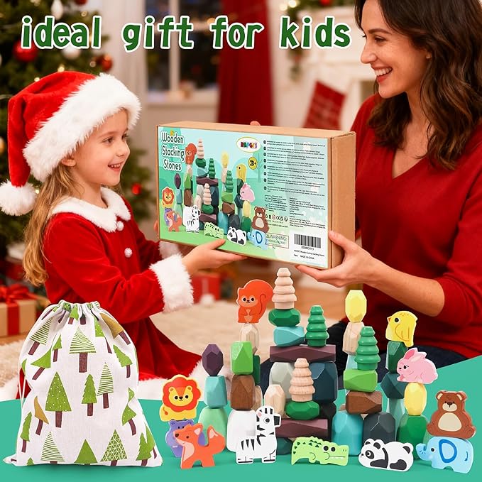 - Complete All-in-One Set: Unleash your child's imagination with this comprehensive wooden stacking toys set, featuring 40 colorful stacking rocks in 7 different sizes and 11 detailed forest animal figures, all designed to inspire creative play and storytelling while enhancing skills like hand-eye coordination and patience. Perfect as stacking toys for kids of all ages, this set encourages open-ended building and role-playing in a fun, forest-themed environment.