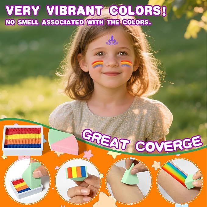 - Safe for kids:Kids face painting kit uses water-activated, non-toxic, and hypoallergenic cosmetic-grade makeup ingredients, ensuring safety for kids and adults with sensitive skin.