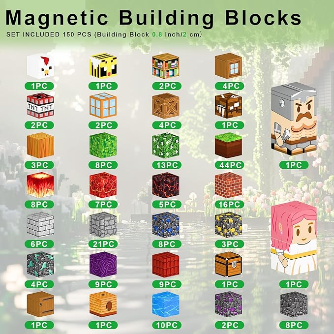 150PCS Magnetic Blocks - Build Mine 3D Forest Lava Set, 0.8in Magnet Building Cubes Toys for Kids Ages 3+, STEM Magnetic Building Blocks Set Birthday Gift for Boys and Girls