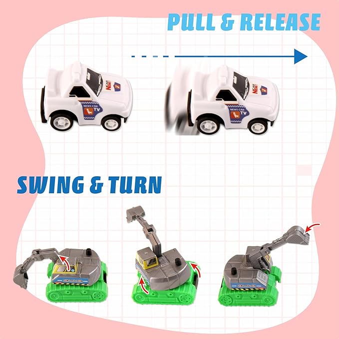- Perfect for Small Hands : With their compact size, these mini vehicles are perfectly designed for little hands to grasp, push, and maneuver easily. Toddlers and young kids can enjoy the fun of "driving" these cars around, enhancing their fine motor skills and hand-eye coordination.