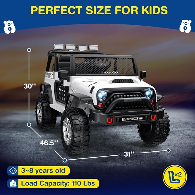 - UNLEASH THE THRILL!: Powered by a 12V 7Ah battery, it offers up to 40 minutes of ride time. With 4 spring suspensions and rugged tires, it conquers any terrain. 3-speed modes, maxing at 4.97mph, provide an exhilarating experience for kids. Get ready for endless fun!