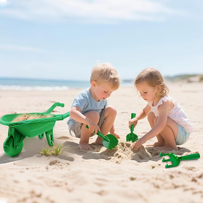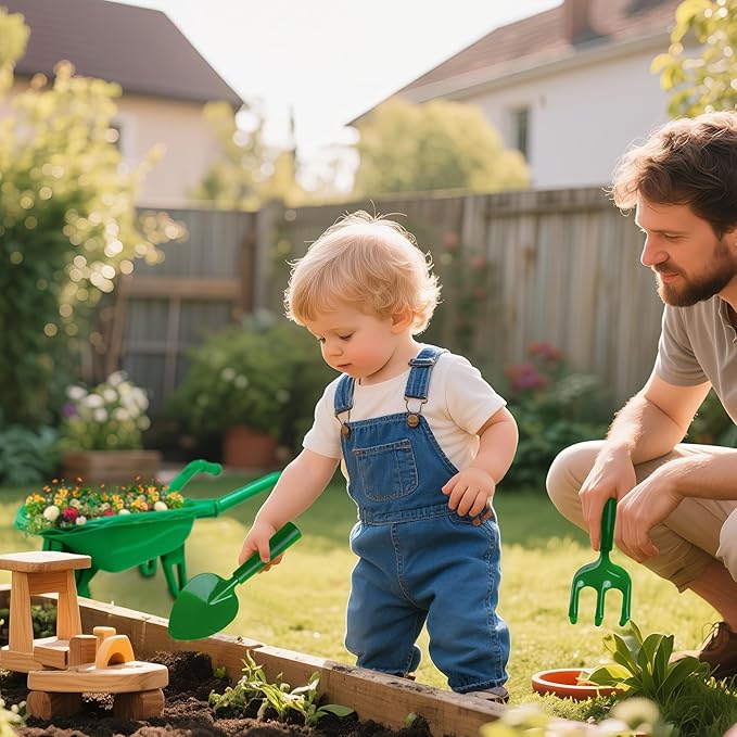 - 4 PCS KIDS GARDEN TOOLS: Toddler gardening tools set include Shovel, Rake, Hoe, Wheelbarrow. The kids garden set perfect for your garden needs.