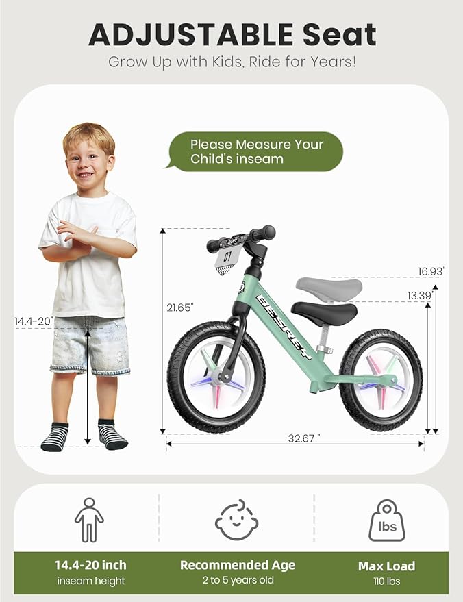 - #1 Christmas Birthday Gift for Boys and Girls Aged 2-5: Our colorful lighting balance bike is ideal for kids aged 2-5 and makes the perfect Christmas Birthday gift. It allows little ones to enjoy the thrill of riding while bringing extra joy and energy to the holiday season
