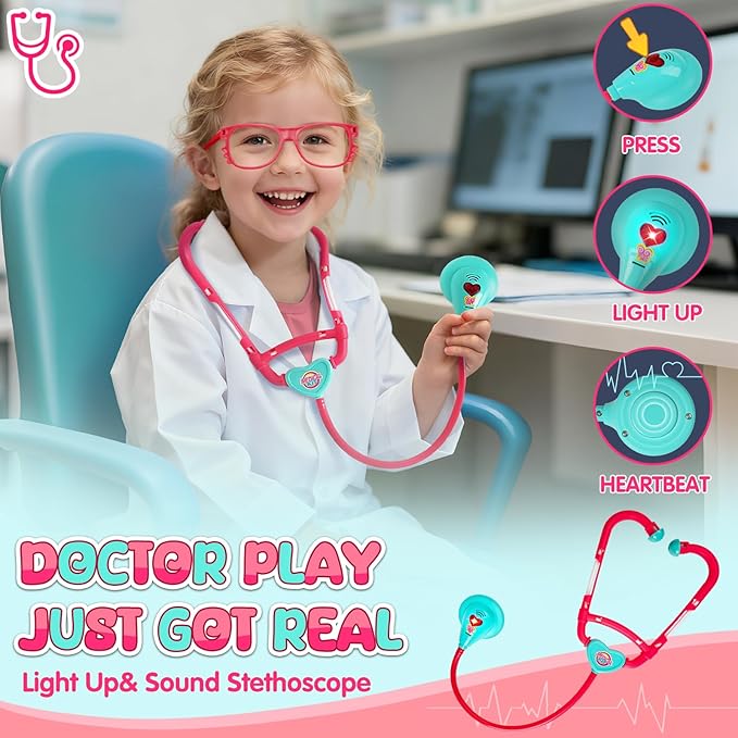 - 【Precious Gift for Kids】This doctor kit toys for kids is an excellent choice as a gift for children on any time, such as birthday parties, Christmas, Halloween, Thanksgiving, and other holidays. Each piece feels durable and well made, which is a huge plus for any parent, grandparent or gift-giver. It is a big hit for preschool and active kids boys and girls aged 4-6 5-7 6-8 years old