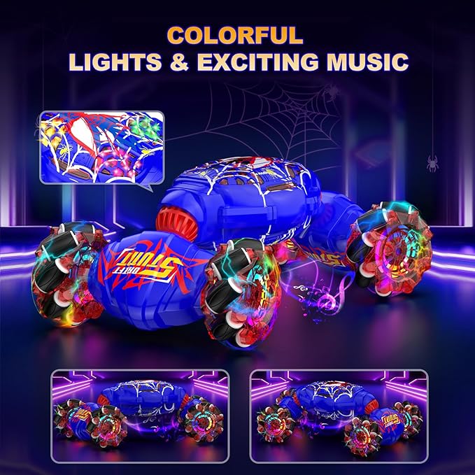 - Two Fun Control Modes: The RC stunt car offers two exciting ways to play: a traditional remote control and a simple gesture-sensing option. The remote ensures precise and smooth control over twists, rotations, and drifts, while the wristband allows basic hand movements to trigger fun actions. Perfect toys for boys aged 6 and up! With advanced 2.4GHz anti-interference technology, children can enjoy smooth, hassle-free control of their RC cars, keeping them engaged and away from screens