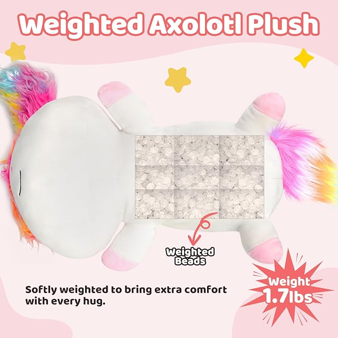 - Unicorn Weighted Plush: Meet your dreamy cuddle companion — a weighted unicorn plush that brings calm, comfort, and a touch of sparkle to every moment. Designed with 1.7lbs of balanced weight, this adorable unicorn stuffed animal helps ease tension and promote relaxation — perfect for cozy nights, sweet dreams, and quiet me-time.