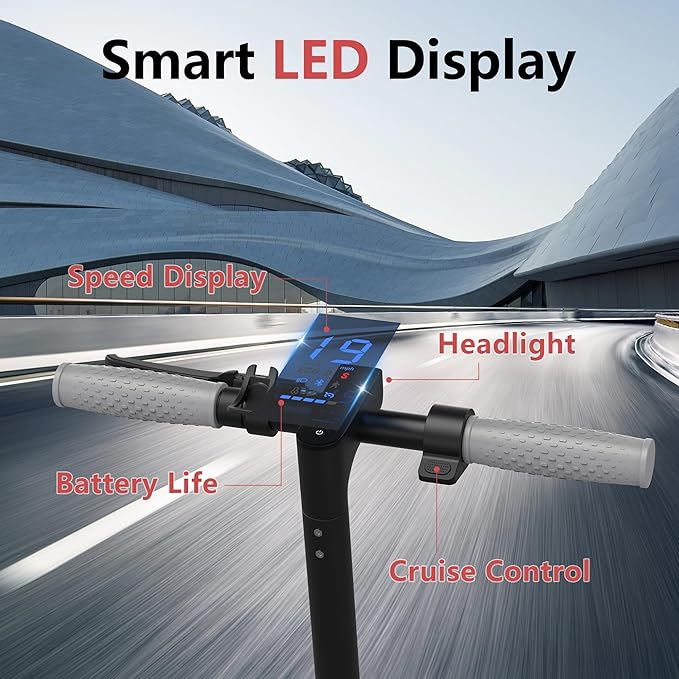 - 📱 Smart APP Control & LED Display:The built-in LED digital display clearly shows current speed, mode, and cruise control status. Pair your smartphone via the dedicated APP control to access features like lock/unlock, set a custom top speed, or activate cruise control—bringing you a smarter riding experience.