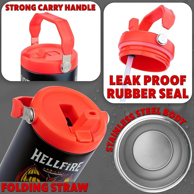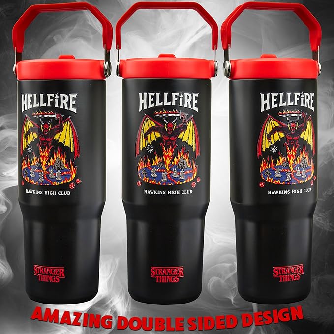 - Special Feature : Easy to Sip Insulated Tumbler - Hot (up to 5 Hrs) & Cold Drinks (up to 12 Hrs), Easy-to-Carry Top Handle & Leak-Proof Rubber Seal - 850ml, Large Stainless-Steel Body & Folding Straw - Mess-Free Sipping On the Go, Thermal Double Wall Vacuum Insulation & Double Sided Stranger Things Design, Vibrant Artwork Design - Beautifully Boxed & Gift-Ready - Official Stranger Things Licensed Merchandise Easy to Sip Insulated Tumbler - Hot (up to 5 Hrs) & Cold Drinks (up to 12 Hrs), Easy-to-Carry Top Handle & Leak-Proof Rubber Sea… See more