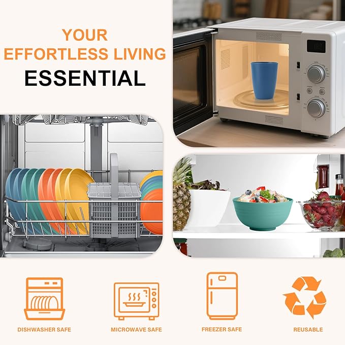 - 【Premium Wheat Straw Dinnerware Sets】 Crafted from wheat straw and high-quality, non-toxic plastic, our dishware is BPA-free, odorless, and rigorously safety-tested. Experience peace of mind with non toxic plates and bowls sets that protect your family without sacrificing quality