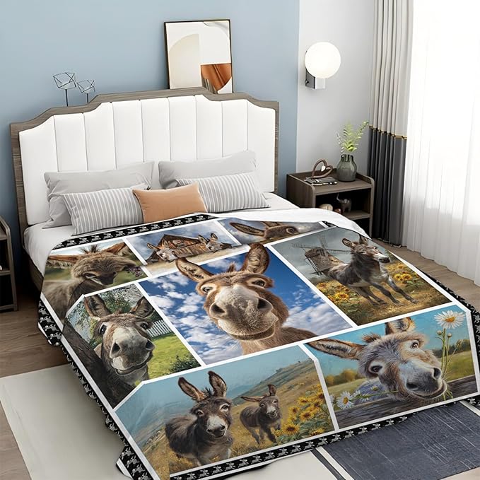 Donkey Throw Blanket Ultra Soft Donkey Flannel Blanket Lightweight Cozy Print Blankets Gift for Women and Men Couch Sofa Bed 60" x 50"