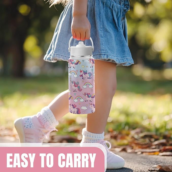 Unicorn Gifts for Girls, 16 oz Water Bottles with Straw Lid, Stainless Steel Insulated Tumbler, Cute Unicorn Cup Gifts for Birthday Christmas