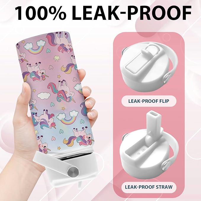 - Friendly Design: Unicorn water bottle is designed with tight lid that is easy to carry and open, and preventing drink leaks and spills. It's perfect for travel,sports or outdoor activities. Never worry about spilling your drink again