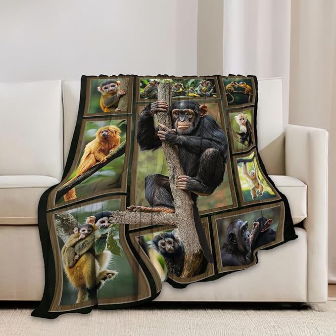 Monkey Blanket Chimpanzee Animal Throw Blankets Gifts for Girls Boys Kids Monkey Lover Soft Cozy Fleece Plush for Couch Sofa Bed 50"x40"