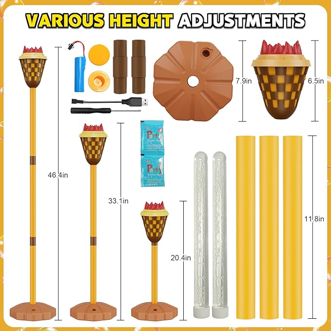 - Resembles Realistic Torch Design: Built in LED light mimics a real torch.The bubble machine's top is removabl.Kids can run around like they're holding a bubble wand, creating bubbles wherever they go.This allows them to chase bubbles even more easily. It's an ideal gift for children and pets.