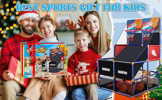 - First Ideal Sports Gifts for Kids 3-8 Years Old: Our 2-players arcade basketball toy gift set is perfect for evey basketball fans and enthsiast. It is a fun and challenging basketball toy suitable for teens of different ages. Your guys will be surprised when receive this gift in beautiful package. Suitable for playing with friends or parents outdoors or indoors. It is great birthday and Christmas gifts for 3 4 5 6 7 8+ year old boys girls.
