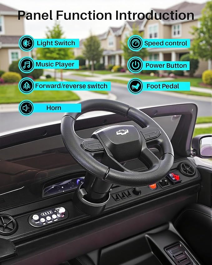- Perfectly Sized: Precision designed to accurately recreate the Chevrolet Silverado truck, scaled down so your little ones can have a fun-sized ride. All the details are designed to bring your children the most authentic and interesting driving experience. The rear storage bin can carry your child's favorite small toys, water bottles, snacks and more.