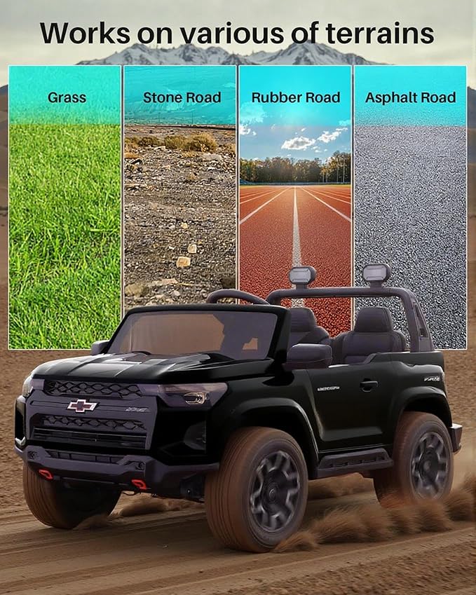 Joywhale 24V Ride on Truck 4WD Kids Electric Vehicle Licensed Chevorlet Ride on car with 7AH Big Battery, 320W Powerful Motors, 2 Seats, Music, 4 Wheel Suspension, 2 Speeds, LED Lights,Black