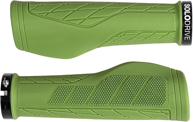 SOLODRIVE Ergonomic Design Mountain Bike Grips, Comfortable Bicycle Handlebar Grips, Single Lock-on and Non-Slip MTB Handle, Fit MTB, E-Bike, Hybrid, Scooter