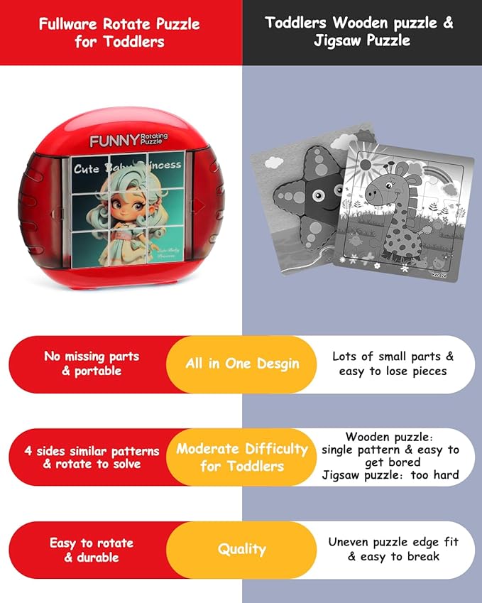 - A HANDY TOY FOR OUTINGS - Whether in the car or at a restaurant, our compact Rotating Puzzles can be carried along and it keeps children quiet and occupied. Moreover, there is no risk of missing pieces after playing with this all-in-one design puzzle!