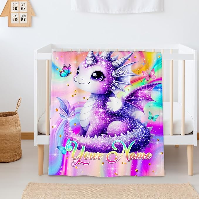 Personalized Blankets for Girls, Dragon Throw Blanket Gift for Girls Kids Teens, Custom 80"x60" Soft Flannel Lightweight Throws Throws for Couch Sofa